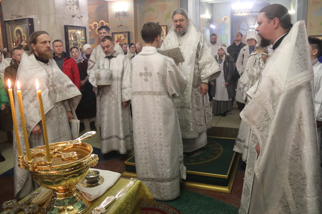 В ночь с 18 на 19 января 2026 года, в праздник Крещения Господа Бога и Спаса нашего Иисуса Христа, в Кафедральном соборе в честь Казанской иконы Божией Матери г. Находки епископ Находкинский и Преображенский Николай совершил ночную Божественную литургию свт. Василия Великого и чин Великого освящения воды.