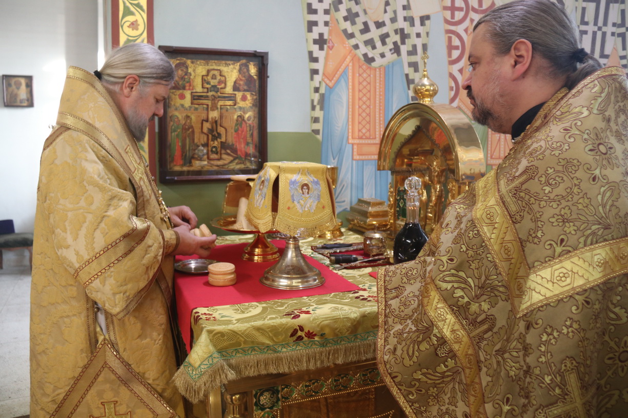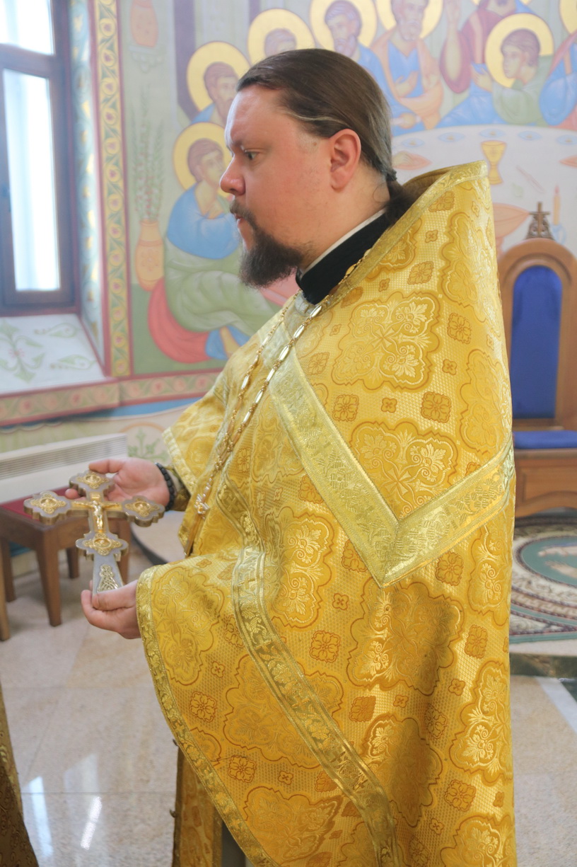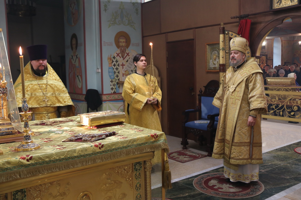 Его Преосвященству сослужили: иерей Виталий Шаркеев; иерей Андрей Попов и иерей Илия Гречишников.