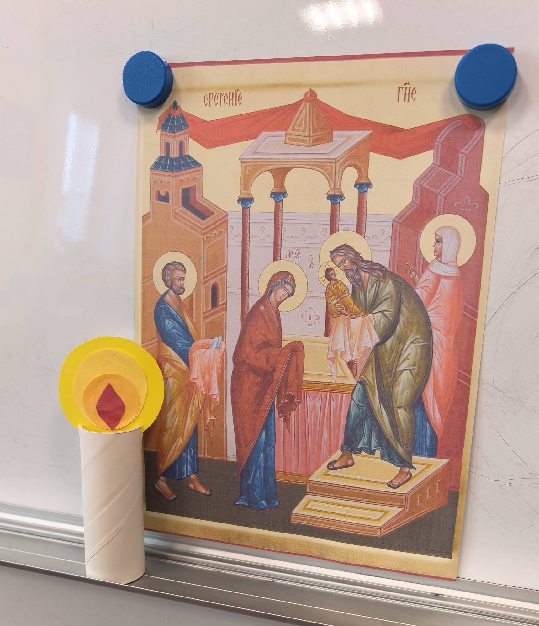Занятие для воспитанников средней возрастной категории (8-12 лет) провела Зобнина Галина Анатольевна. Урок для воспитанников младшей возрастной категории (5-7 лет) провели педагоги Аксёнова Анна Михайловна и Стрельникова Кристина Анатольевна. Малыши узнали про традицию освящения свечей в праздник Сретения и выполнили творческое задание - поделку «свечечка».