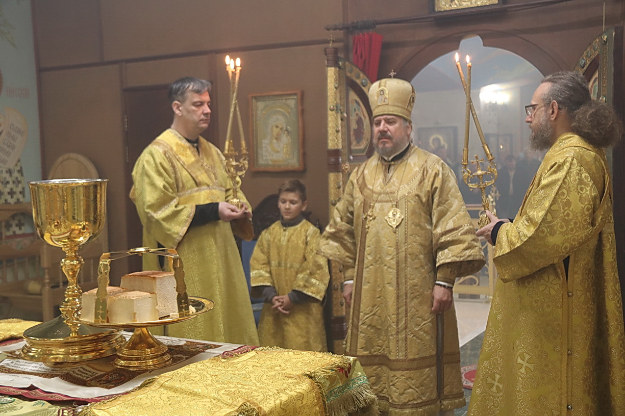Его Преосвященству сослужили: иерей Андрей Калнин; иерей Виталий Шаркеев; иеромонах Ермоген (Крещенко) и иерей Илия Гречишников.
