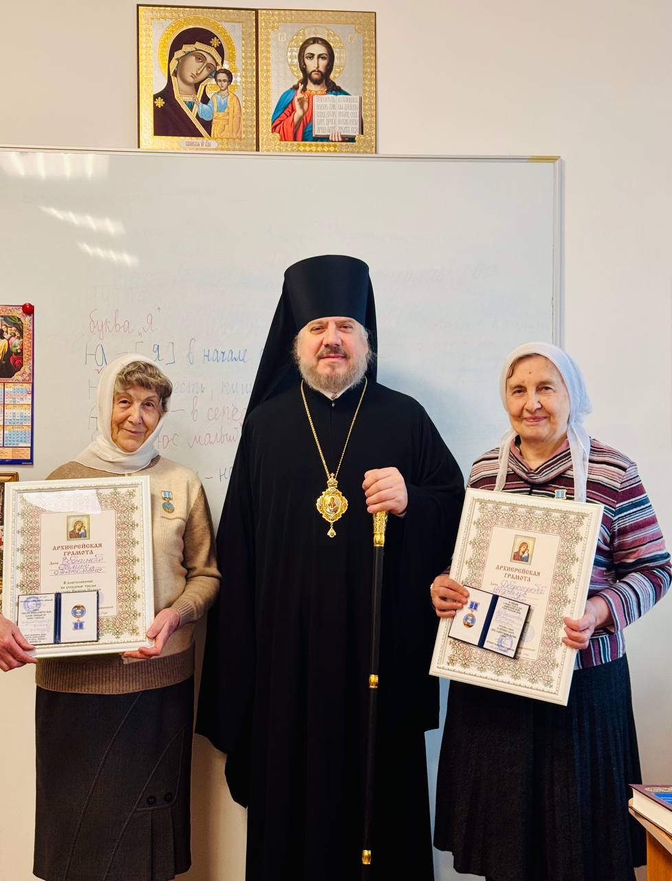 22 февраля 2026 года педагоги воскресной школы Казанского кафедрального собора г.Находки Доброгорская Наталья Ивановна и Зобнина Галина Анатольевна награждены архиерейскими грамотами и медалями Приморской митрополии.