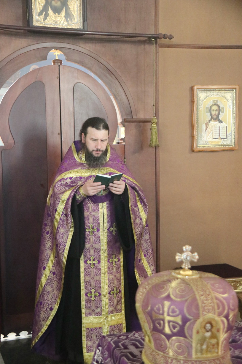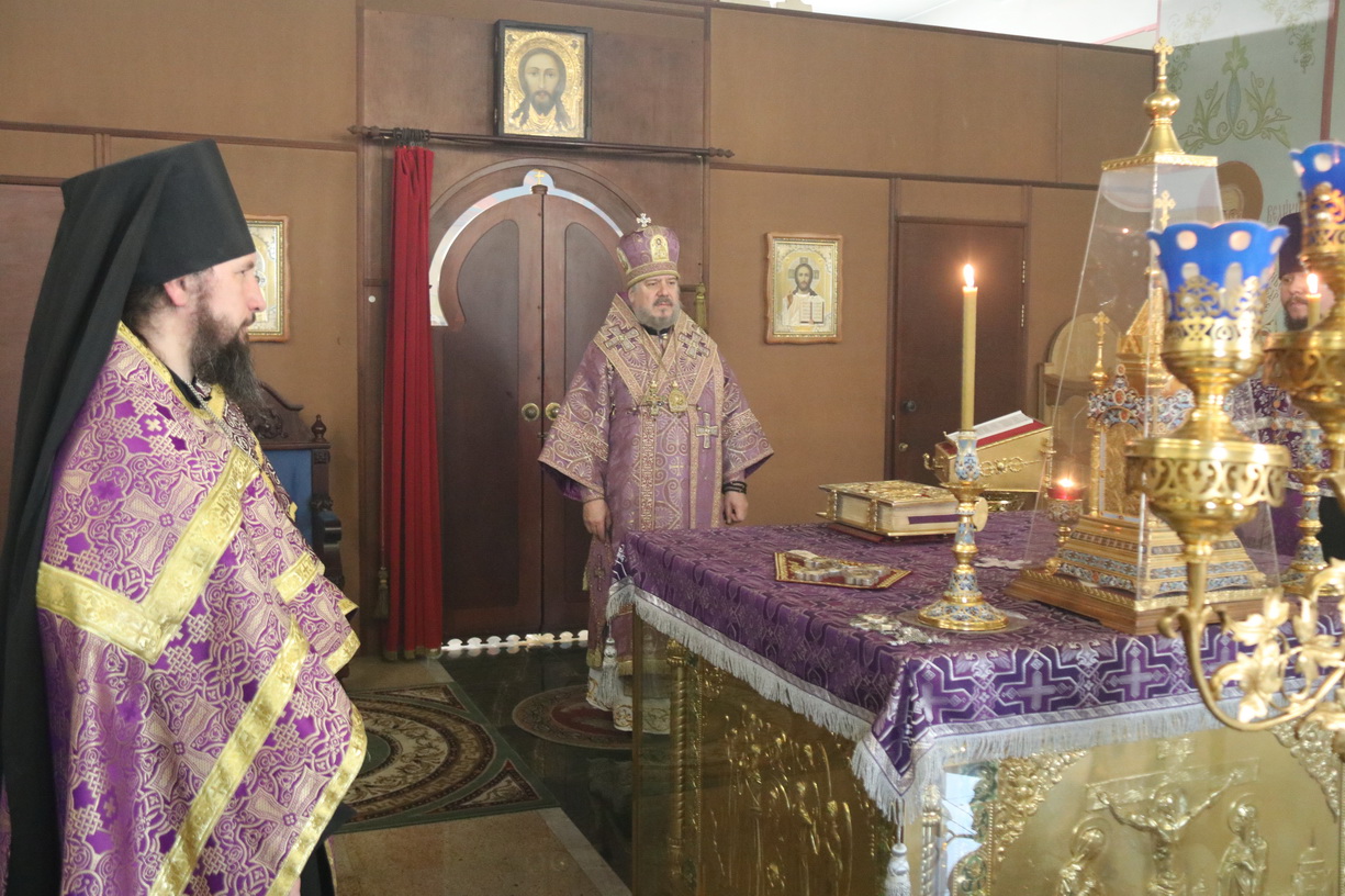 Его Преосвященству сослужили: иерей Виталий Шаркеев; иерей Андрей Попов и иеромонах Ермоген (Крещенко).