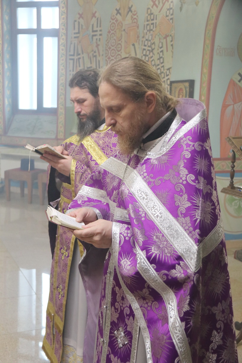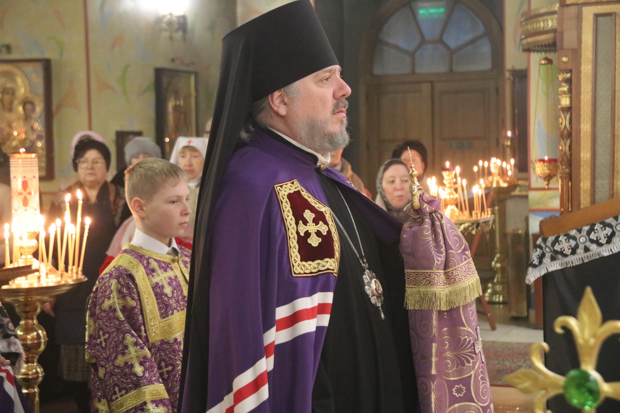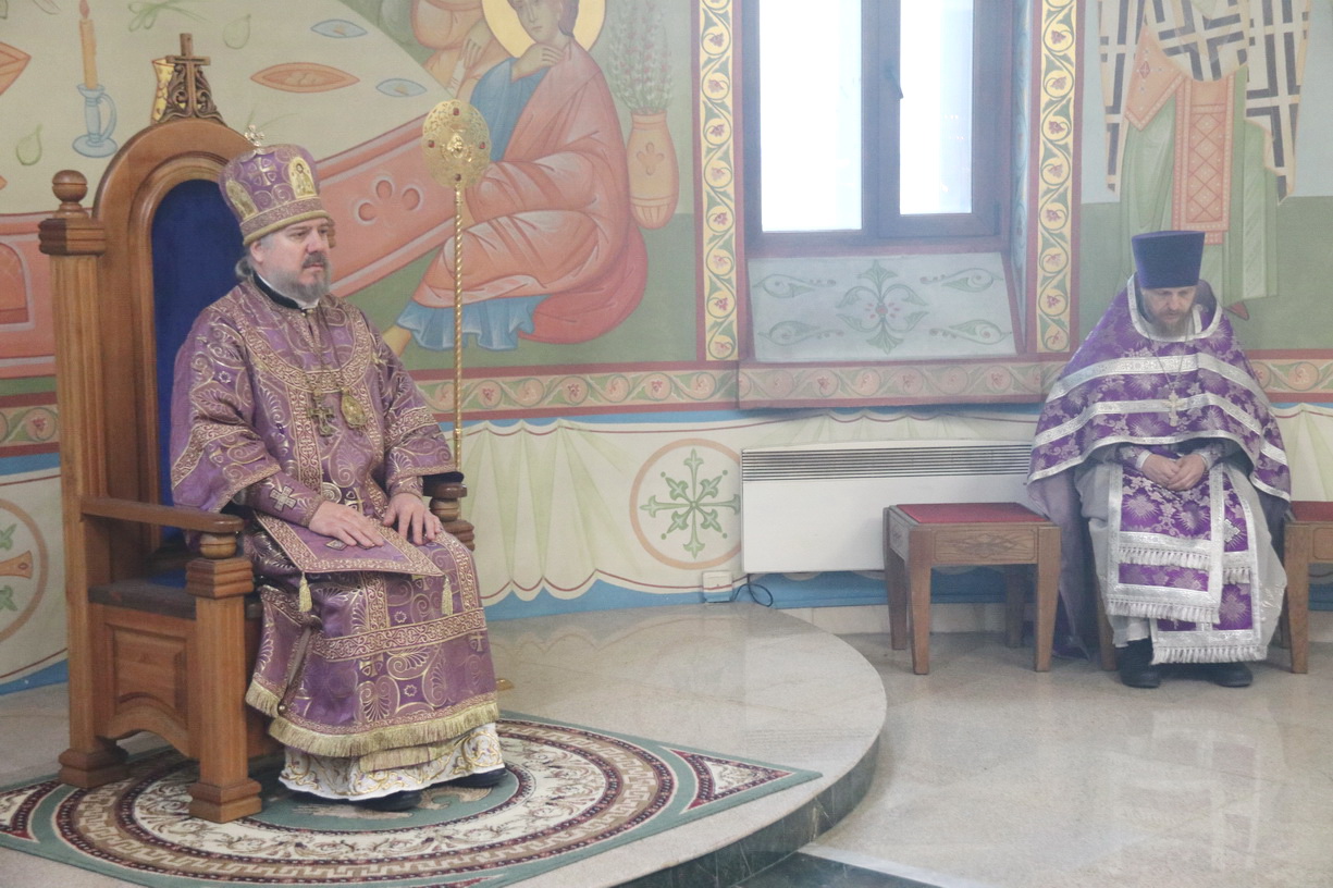 Его Преосвященству сослужили: иерей Андрей Калнин, иерей Виталий Шаркеев и иеромонах Ермоген (Крещенко).