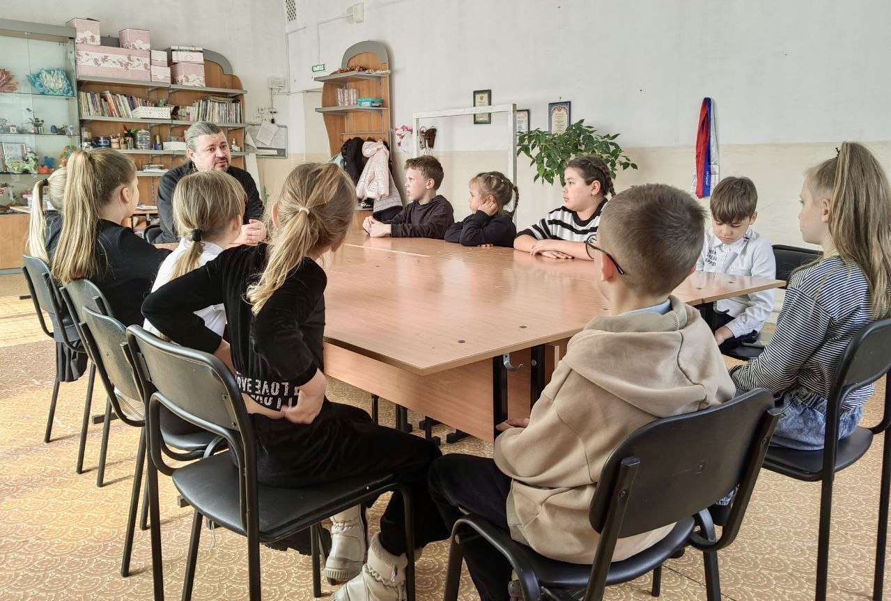 Дети внимательно слушали священника, встреча прошла в теплой атмосфере.