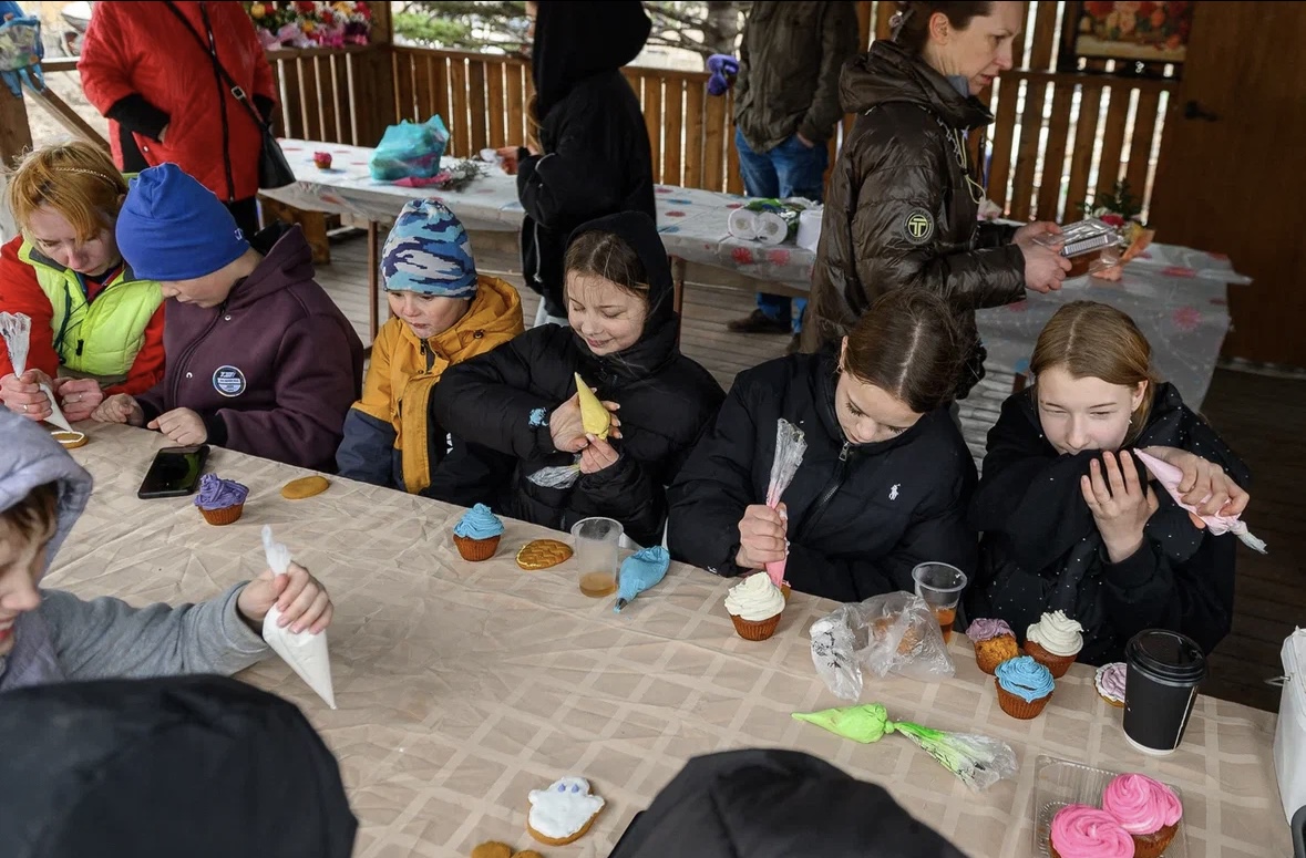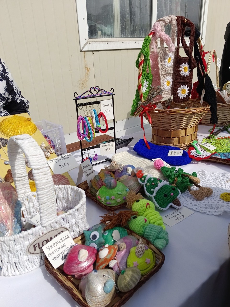 Многочисленные прихожане приобрели различные предметы детского творчества: вязаные игрушки, брелоки из ракушек, браслеты и кольца. Лакомились домашней выпечкой, компотом.