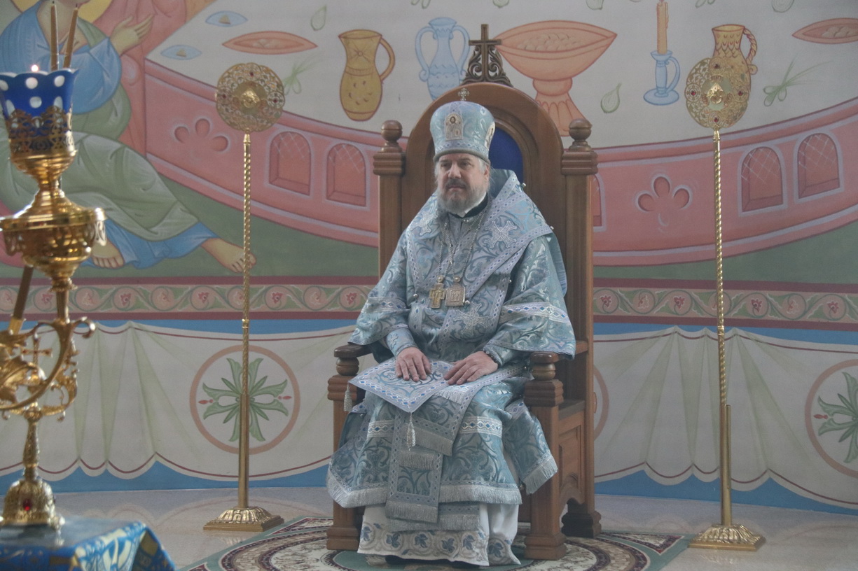 По заамвонной молитве епископ Николай, в сослужении священства, возглавил праздничное славление, после владыка Николай обратился к присутствующим с архиерейским словом.