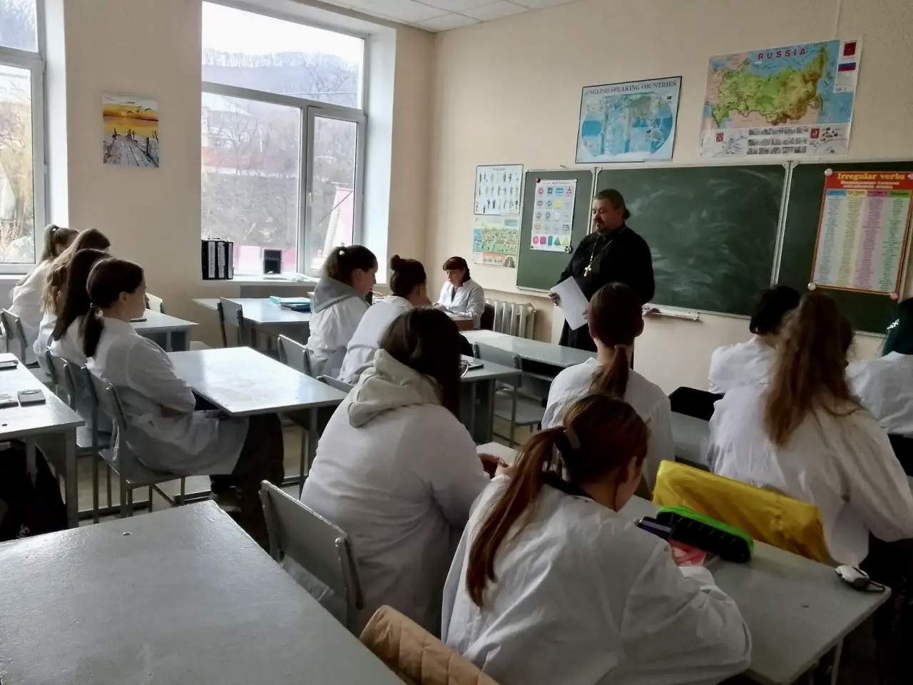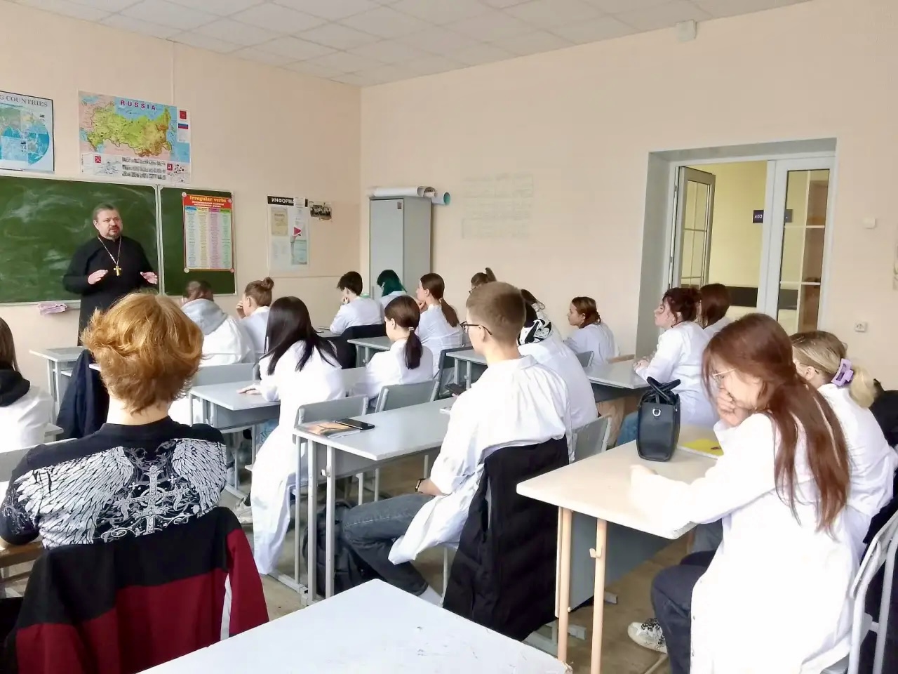 10.04.2026г.Священник провел лекцию о великих врачах Пирогове и Гаазе для будущих медиков — студентов колледжа.