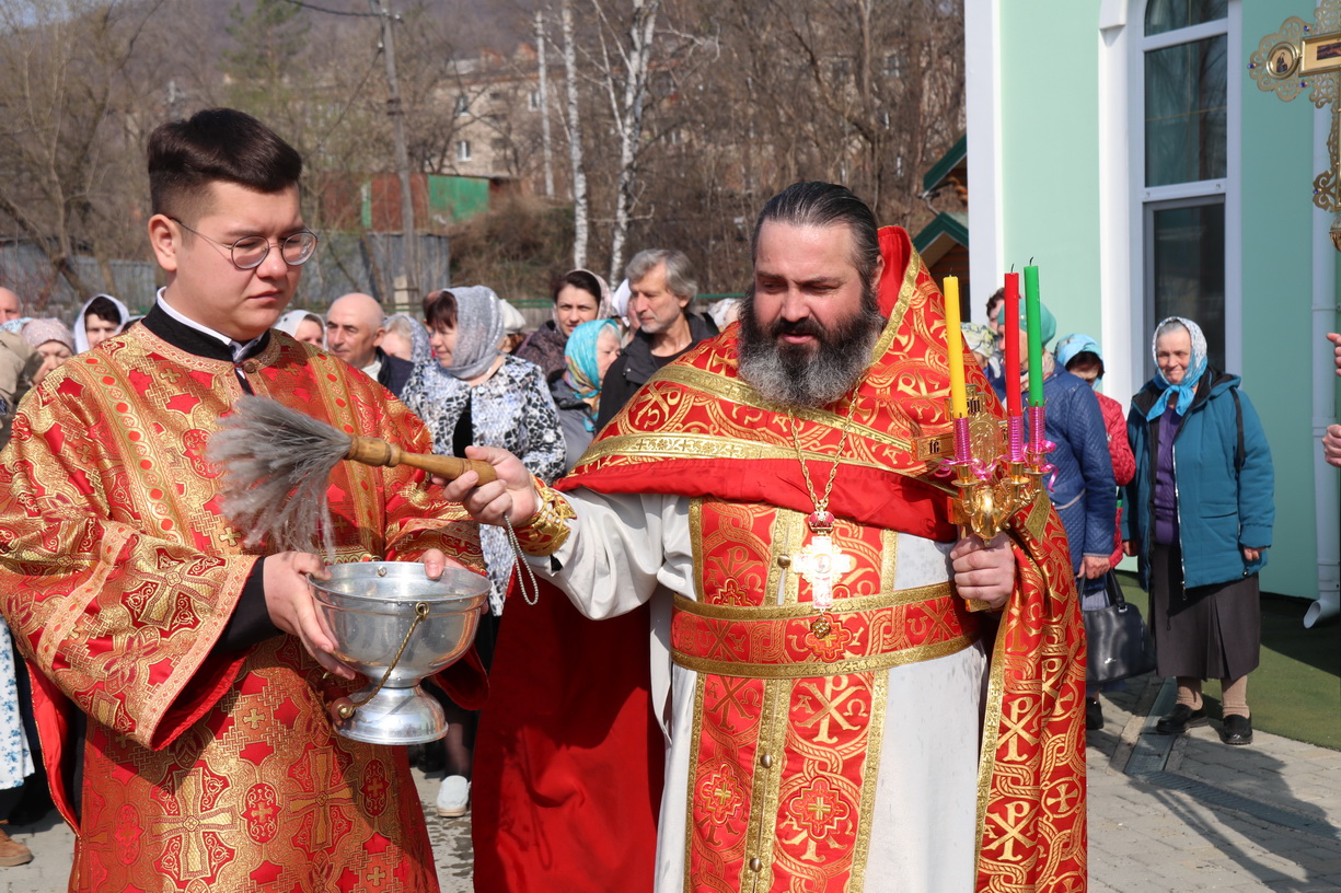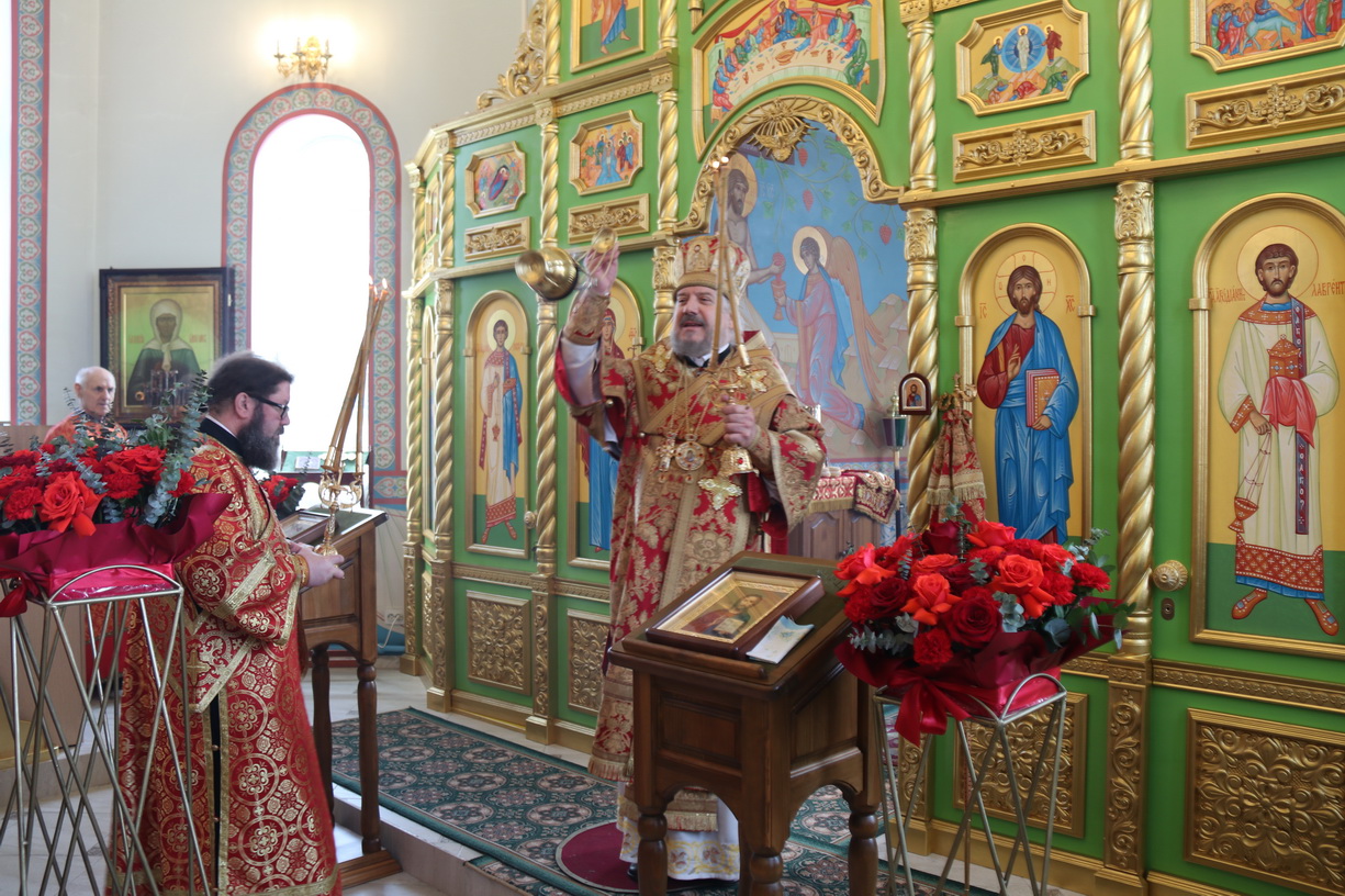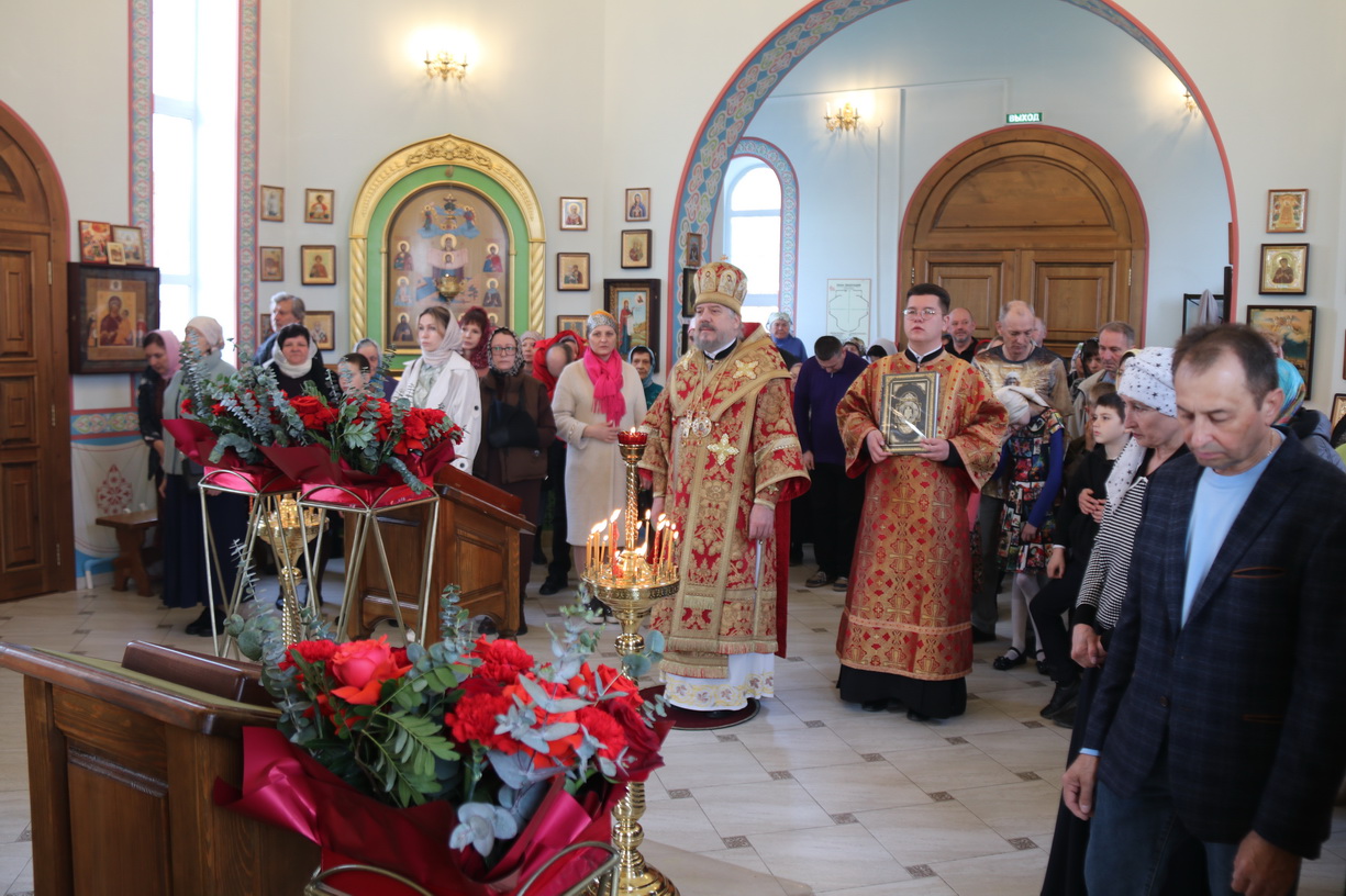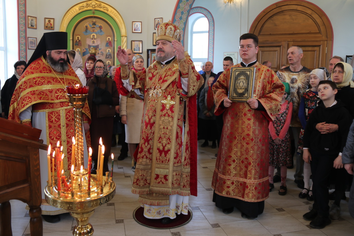 По заамвонной молитве епископ Николай, в сослужении духовенства, совершил праздничное славление, крестный ход и обратился к прихожанам храма с воскресной проповедью, в которой поздравил всех с праздником Христова Восресения.
