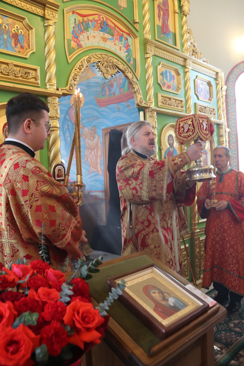 Его Высокопреосвященству сослужили: иеромонах Силуан (Березовский), настоятель храма и иерей Андрей Калнин, ризничий Казанского Кафедрального собора г. Находки