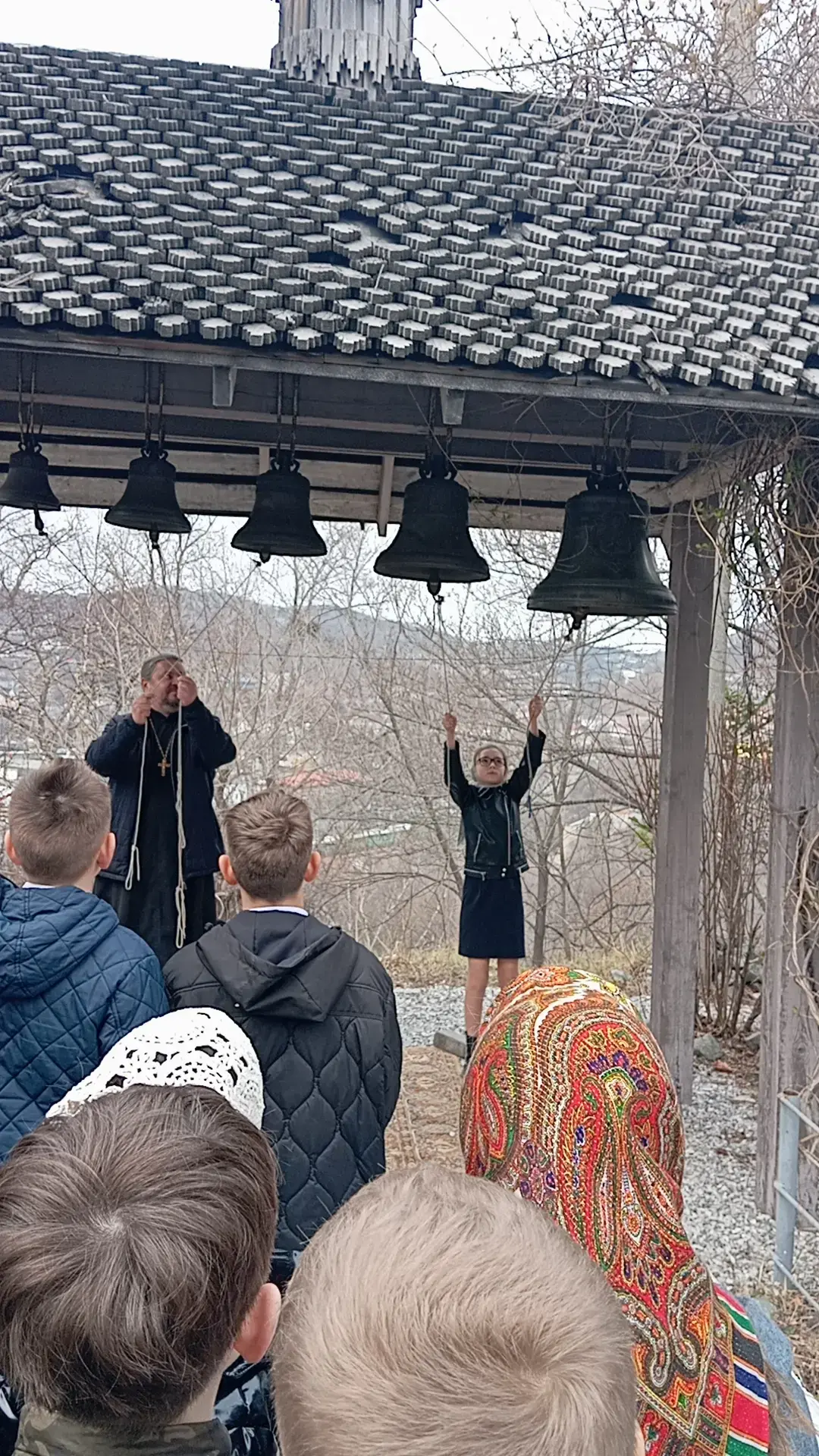 На Пасхальной неделе ученики 4 «А» класса школы No 10 пришли с преподавателем на экскурсию в Казанский кафедральный собор г. Находки. Гостей встретил руководитель миссионерского отдела Находкинской епархии иерей Виталий Шаркеев. Сначала ознакомились с Храмовой территорией, затем с внутренним устройством собора. Экскурсия— это прекрасная возможность узнать глубже свою веру и прикоснуться к православной культуре не только со страниц учебника. У каждого из ребят была возможность позвонить в колокола.