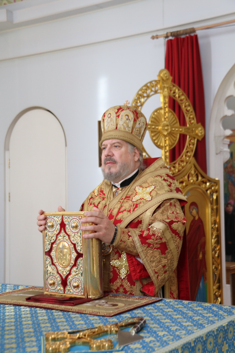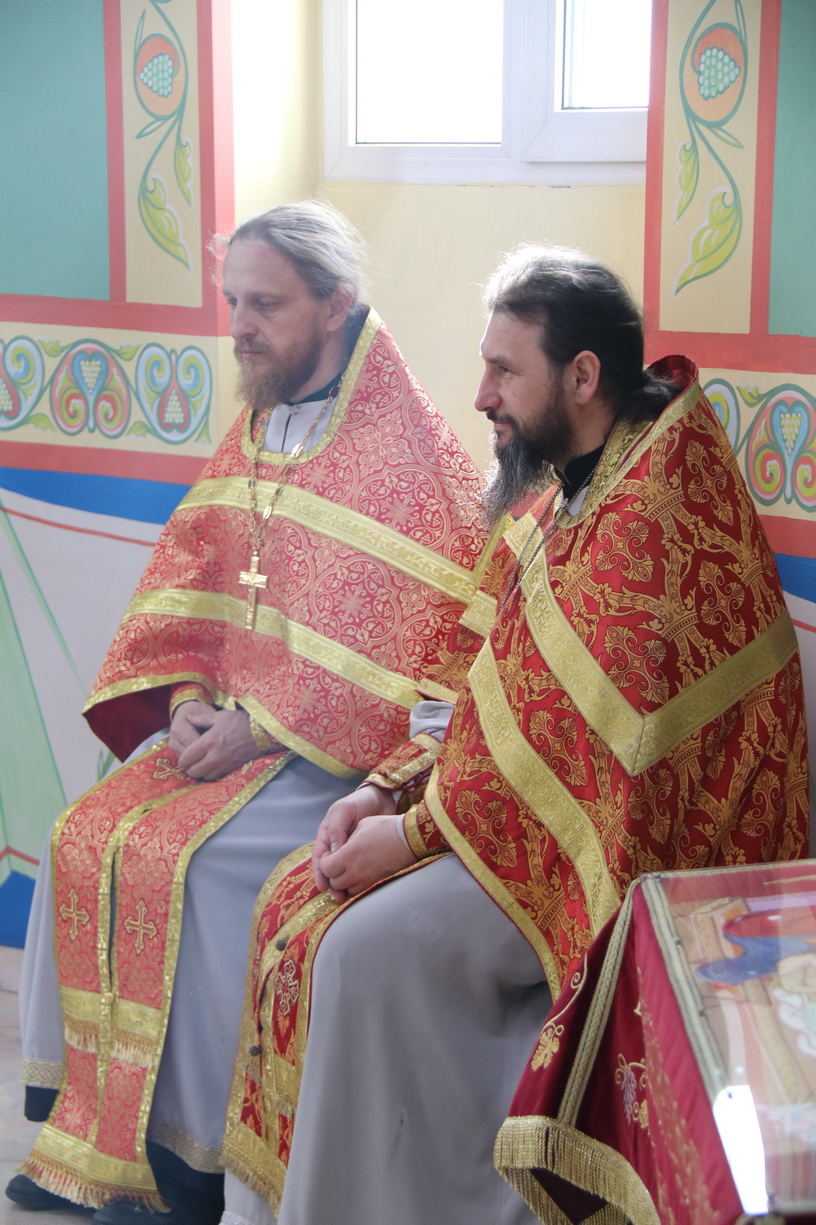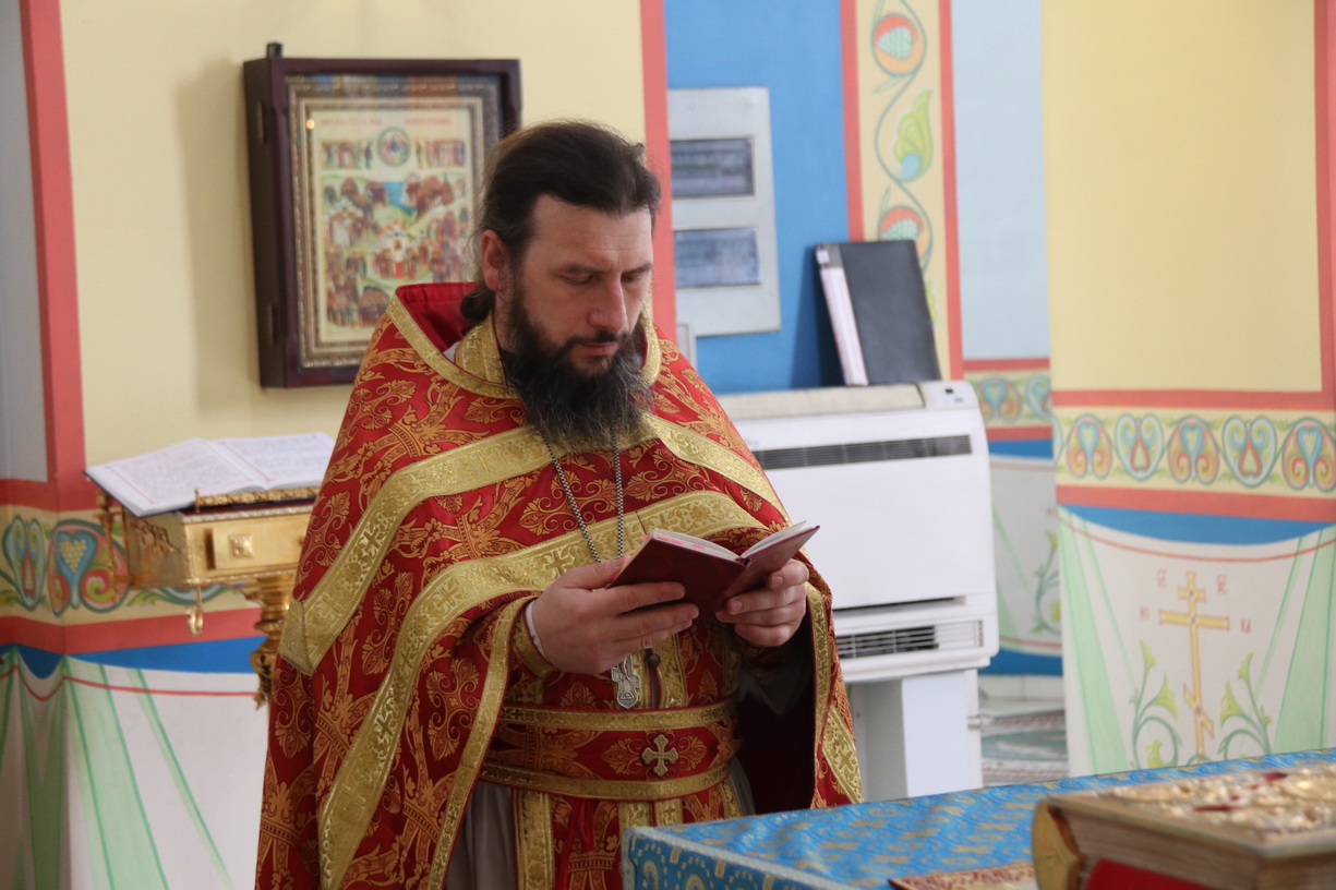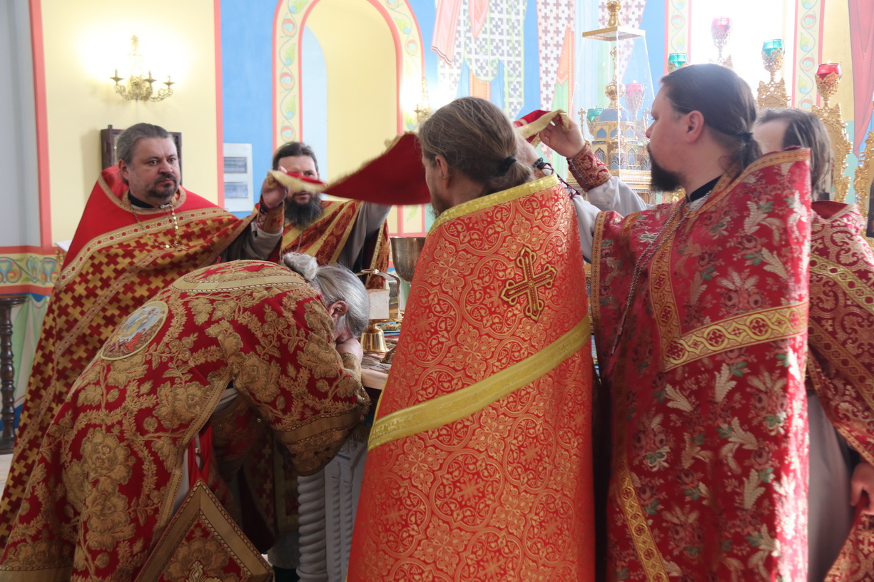 Его Преосвященству сослужили: иерей Андрей Калнин; иерей Виталий Шаркеев; иерей Андрей Попов; иеромонах Ермоген (Крещенко); иерей Илия Гречишников.